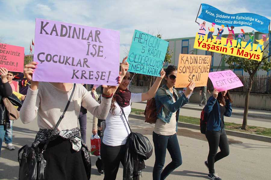İşçi olmanın yanı sıra kadın bir işçi olmanın getirdiği zorluklar da var elbet! Fabrikaya gidip makine başında çalışmak, eve gelip ev işleri yapmak, çocuklarımıza bakmak derken ömrümüz geçip gidiyor. Halbuki bizim de bir ailemiz var, bizim de çocuklarımız var zaman ayırmak istediğimiz. Daha iyi ve insani koşullarda yaşamak bizim de hakkımız. Bizim fabrikamızda her ne kadar yasal olarak kadınlara daha toleranslı davranılıyor gibi olsa da daha işe girerken ‘mesaili çalışma’ için kağıt imzalatıyorlar. Bu demek oluyor ki, ailenizden, çocuklarınızdan, kendinizden fedakarlık yapacak ve çalışacaksınız!