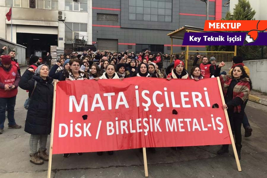 Ben, Tuzla Organize Sanayi Bölgesi’ndeki Key Teknik fabrikasında çalışan bir kadın işçiyim. Bu mektubu yazma amacım, yanı başımızdaki Mata işçilerinin direnişlerini selamlamak.