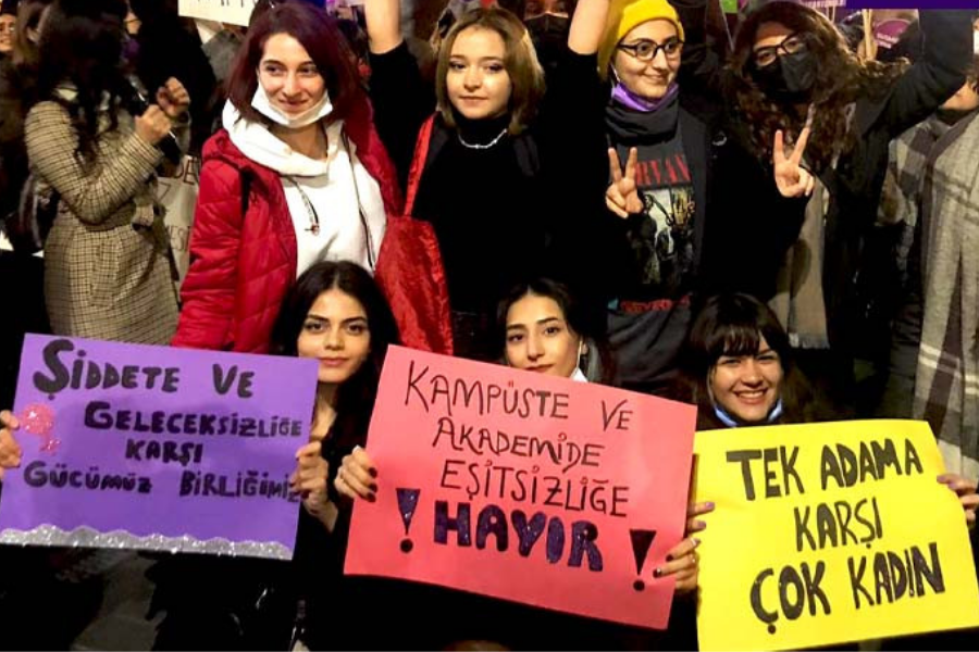 25 Kasım Kadına Yönelik Şiddetle Mücadele ve Dayanışma Günü'nü geride bıraktık. Günümüz Türkiye’sinde kadınlar olarak ne tacizden ne de cinayetten kurtulabiliyoruz. Sokaklar biz kadınlar için güvenli değil, yarın başımıza hangi felaketin geleceği meçhul. 20 yaşındaki bir üniversite öğrencisi olarak sabah erken ve akşam geç saatlerde dışarıda olmaya çekiniyorum. Maalesef hepimiz arkadaşlarımıza her fırsatta canlı konum atmayı, sokakta en ufak bir harekette yolu değiştirmeyi alışkanlık haline getirdik ama böyle yaşamayı kabul etmiyoruz!