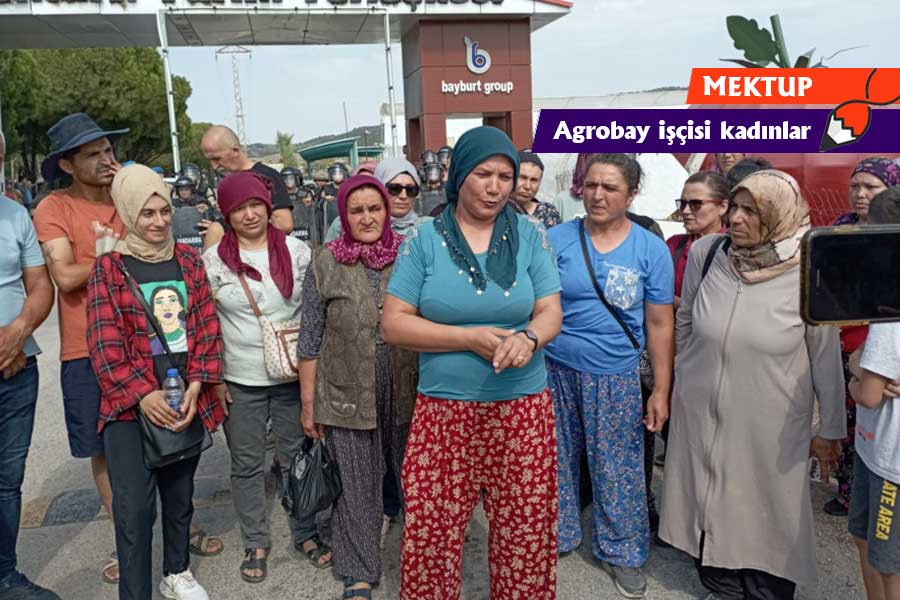 Bizler 52 gündür hakları için Agrobay Seracılık önünde direnen kadın işçileriz. Tarım işçisiyiz. Belki birçoğunuzun bildiği hikayemizi yine de sizinle paylaşmak isteriz. Biz kadın emekçiler; Bergama, Dikili, Kınık ve Ayvalık bölgelerinde, bu yörenin köylerinde yaşıyoruz. Çok erken yaşlarda burada tarım işlerinde, sonra da bu serada çalışmaya başladık. Kendi topraklarımızda bir başkasının işçisi haline getirildik. 6, 12, 18 sene gibi uzun zamanlarca Agrobay’a emek verdik. Aslında yaşımız çok olmasa da torun torba sahibiyiz birçoğumuz, fakat hâlâ çalışmak zorunda olan ihtiyaç sahibi insanlarız. Kimimizin okutacak çocukları, kimimizin doğacak torunları, yüklü ev kiraları ve banka borçlarıyla çalışmaktan başka çaremiz yok, çünkü bizler emeğiyle var olabilen insanlarız. Tüm çalışma hayatının genelinde olduğu gibi bizim yöremizde de kadınlar için çok da fazla iş seçeneği yok. Bu yüzden Agrobay Seracılık tarafından; kamuoyunun son iki aydır duyduğu, bizimse yıllardır ezildiğimiz ağır koşullar, maruz kaldığımız kötü muameleler altında çalıştırılabildik.