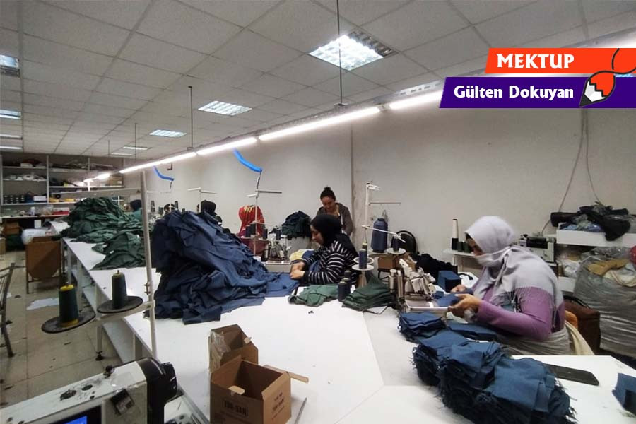 Işıkların sıralandığı masalar, sandalyeler, makine sesleri... Atölyede çalışanların çoğu genç. Tekstil atölyelerini kadınların avantaj olarak görme sebeplerinden biri, yaşadıkları mahallede bulunuyor olması. Emine, bir şey olduğunda evine gidip gelebilmesinin bu işi tercih etme sebeplerinden olduğunu söylüyor. Çünkü kadınlar her ne kadar çalışıyor olsalar da evde ne olduğu, çocuğun ne yaptığı, ev işleri kadının kafasının bir köşesinde hep durmak zorunda.