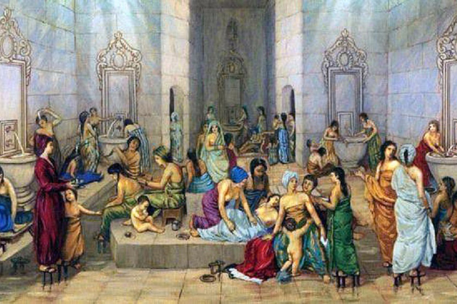 Kadınlar için hamam, kuaför ya da güzellik salonu, tedavi salonu, ahbaplarla gezi, eğlence, kutlama, kutlamaya katılacak kişileri ağırlama yeridir aynı zamanda. Hamama gitmek kadınlar için o kadar önemli bir olaydı ki, alaycı bir eski İstanbul türküsünde kadın kocasının kusurlarını sayıp dökerken “Ayda bir kerecik olsun herif yollamazsın hamama” der. 1888 doğumlu Münevver Alp, kadınların hamam için hazırladıkları bohçayı şöyle anlatıyor: “Kadınlar en ağır kumaştan, en güzel işlemeli bohçalarını hamama götürmek için saklardı. Bu tertemiz ütülü, işlemeli bohçalar içinde kolağızları, yakaları oyalı, uçkurları hesap işli çamaşırlar, ütülü peştemaller, pul ve boncuk oyalı hamam tülbentleri, yalnız hamamdan hamama kullanılan fildişi taraklar, kalaylı taslar, sabunluklar…”. Hamama giden kadınların gördükleri ağırlamanın varlıklarına olduğu muhakkak. Kadınların uzun süren hamam sefalarında yıkanma “yemekten önce ve sonra” olmak üzere iki kere yapılır. Münevver Ayaşlı anlatıyor: Yemekten önce“Önce saça üç sabun, biraz kirin kabarması için bekleme, göbek taşında keselenme, sonra kurna başında kir akıtma, saça üç sabun daha ve sabunlu bezle ova ova sabunlanma”, göbektaşında yemekten sonra “bir daha baş yıkama, saç tarama, sabunlanma, abdest alma”. Hanımlar süslenme işini hamamın soğukluk denen bölümünde yapar. Hamamcı Ülfet anlatır: “Hepsi de soğuklukta rastıklarını çekmişler, kınalarını koymuşlar, zerdeçallarını, çeyreklik boyalarını sürmüşlerdi”. Saçlar, henüz sentetik boyaların bilinmediği bu dönemde hamamın yakınına kurulan aktarların hazırladığı karışımlarla boyanırdı. Bu boyanın karışımı uzun denemelerle saptanır ve aktar her müşterisinin boyasının karışımını da bilirdi. Temizliğin yapıldığı yer olarak hamam, aktarların sattığı ürünlerin de en fazla rağbet gördüğü yerdi elbette. Hamam otu, temizlenen tüylerin yeniden çıkmasını önleyen maddelerden biri. Ama işte, güvenilir aktarlardan almak şart!