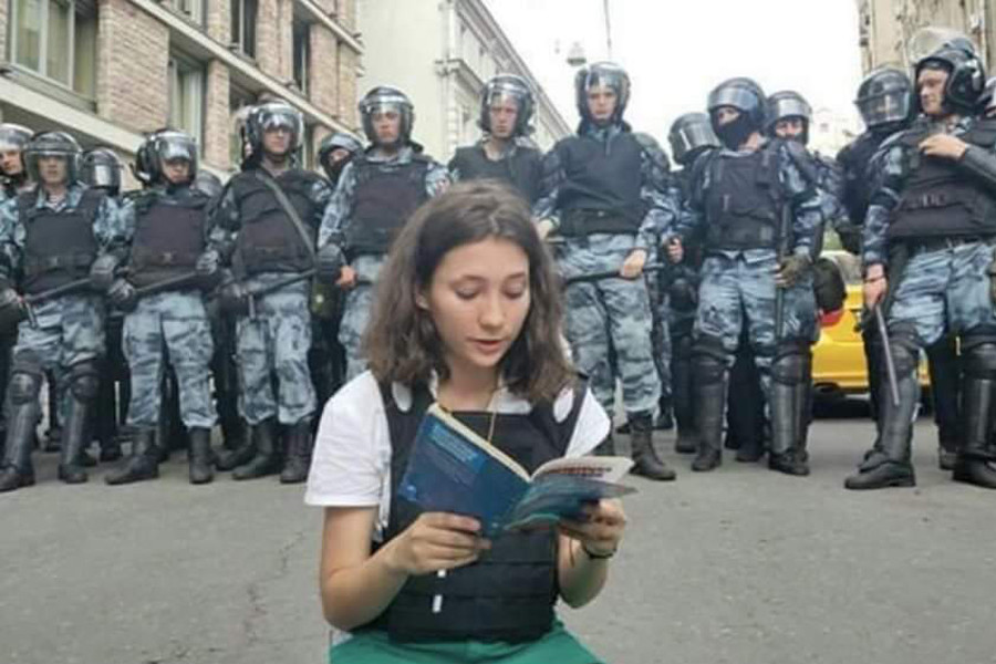 Polisin bu tutumunun ve seçimlere ilişkin kararın yasal olmadığını savunan 17 yaşındaki eylemci Olga Misik ise protestolar esnasında üzerine giydiği çelik yelek ve elinde Rusya Anayasasıyla polislerin karşısına geçti.