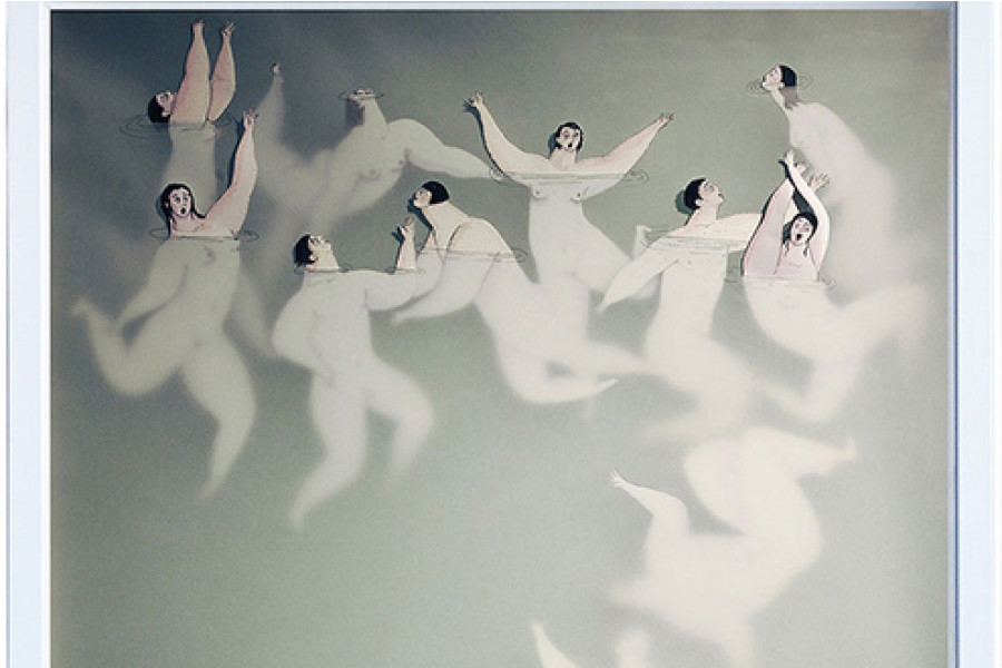 Kafası, ayakları veya bir kolu suyun dışında kalan kadınlar, derinliğini öngörmekte zorlandığımız sular içinde dolanıyor. Üstelik çoğu zaman hallerinden memnun mu yoksa boğuluyor mu olduklarını söylemek güç. Bu durum, Su Kadınları’na gizemli ve hakkında yargıya varılması güç bir hava veriyor. Alins, çizimlerindeki su efektini, yarı saydam kağıt kullanarak vermiş.