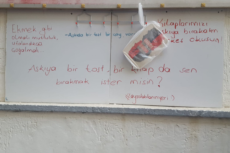 Tekstil işçiliğinden esnaflığa doğru uzanan hayatına 2 tane de kitap sığdırmış Aysel abla. İlk kitabını daha önce Ekmek ve Gül’e yazmıştık. Aysel abla bugün başka bir güzellikle ve dayanışmayla karşımızda: Askıda kitap. Tost dükkanının bulunduğu sokağı kah şiir okuyup kah türkü söyleyerek neşelendiren Aysel abla bugün de askıda kitap kampanyasıyla güzelleştirdi. “Koca koca kitaplıklarda okunmayı bekleyen onlarca kitap ya da kitap okumak isteyip ulaşamayan bir sürü insan var. Belki bu askıyla o kitaplar o insanlara ulaşır diye düşündüm” dedi Aysel abla...