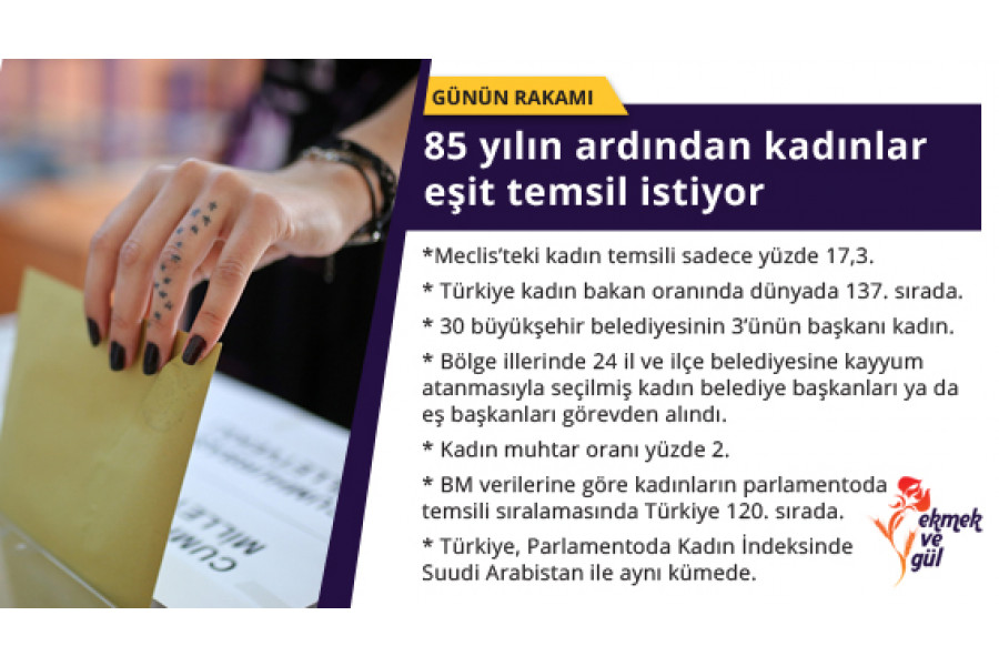 Kadınlara seçme ve seçilme hakkı tanınmasının 85’nci yıl dönümünde rakamlar ise şöyle;