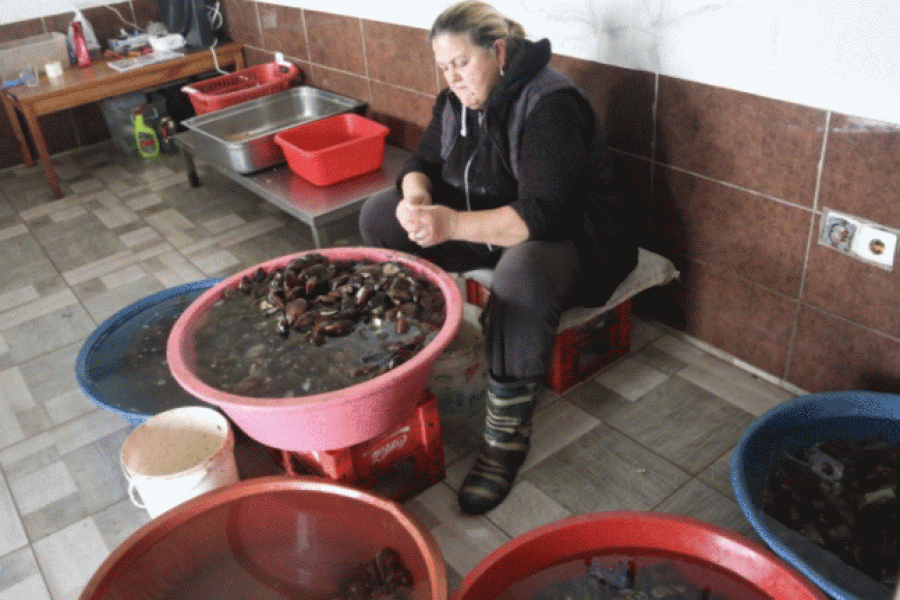 İstanbul’da martı çığlıklarının tekne seslerine karıştığı Rumeli Kavağı’nda midye mesaisi sabahın erken saatlerinde başlıyor. Erkekler tekneyle açılıp midyeleri yüklerken kadınlar gelen midyelerin pilavlarını hazırlayıp dolduruyor. 30 yıldır midye işçiliği yapan 45 yaşındaki Ömür Tanka ekmeklerinin iki kabuk arasında olduğunu dile getiriyor. Tanka, işlerinin büyük sabır gerektirdiğinin altını çizerek, “Çok sabır isteyen bir işimiz var. Sabah altıda işe geliyoruz dörde beşe kadar soğuk, kar, fırtına demeden hep buradayız. Çünkü bu bizim ekmeğimiz, bizim ekmeğimiz bu iki kabuğun arasında. Ne bir bayramımız var ne yılbaşımız var, hiçbir sosyal hayatımız yok. Sabahın erken saatlerinde midyeler geliyor, önce temizliğini yapıyoruz, sonra başına oturup saatlerce suyun içinde kabukları açıp kötüleri ayırıyoruz” diyor.