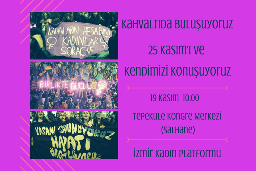 İzmir Kadın Platformunun çağrısıyla İzmirli kadınlar 25 Kasım Kadına Yönelik Şiddete Karşı Uluslararası Mücadele ve Dayanışma Günü’nü konuşmak için kahvaltıda bir araya gelecek.