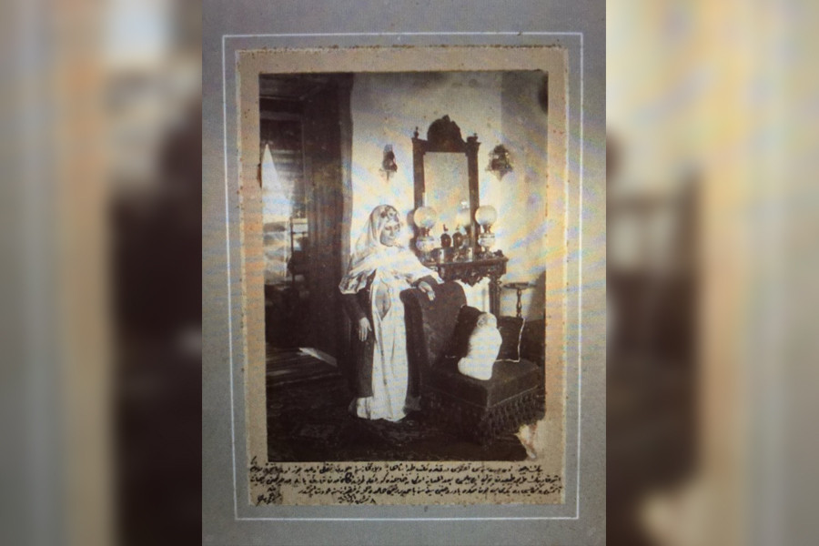 1898 ağustosu ayında Eyüp'ten Mekteb-i Tıbbiye-i Şahane viladethanesine (doğumevi) sevk edilmiş. Boyu bir metre on santimmiş ve muayene sonucu normal doğum mümkün görülmemiş. Kadın ‘25 gün sonra’ çocuğunu kucağına alabilmiş. 21 Ekim 1903 Besim Ömer (Akalın 1862-1940) tarihli ve imzalı fotoğraf, Fotoğraf Milli Saraylar Arşivi’nden, Abdülmecid Efendi evrakından.