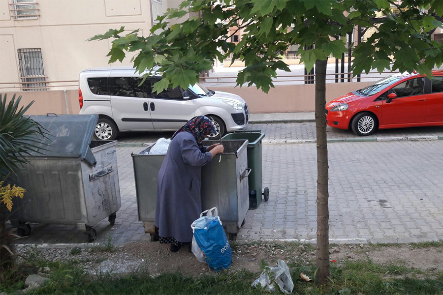 GÜNÜN FOTOĞRAFI: Bayram sabahı çöpte yiyecek arayan kadın