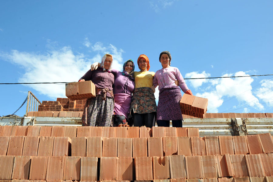 27 yıldır bu işi yaptığını anlatan Ayşe Gündoğdu, “Tuğla satan tüccarlar ve tuğla fabrikaları bizi çağırıyor. Nerede iş varsa biz oraya koşuyoruz. Bizden başka kadınlar da bu işi yapıyor. 27 yıldır bu işi yapıyorum. 4 çocuğum var. Çalıştım, tuğla boşaltmayla iki kızımı evlendirdim, ev aldım, çocuklarımı okutuyorum. Arkadaşlarımla bir ekip oluşturduk, tuğla boşaltıyoruz” diye anlatıyor işini.