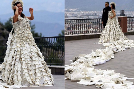 ‘Çocuklar Gelinlik Giymesin, Okula Gitsin’ projesi kapsamında Fethiye’de kitap sayfalarından oluşan gelinlik tanıtıldı.