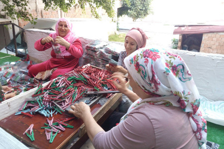 Günde, içleri 150 mandalla dolu olan 50 ayrı mandal paketi yapıyorlar. Bu şekilde geçinen kadınların yaptığı mandallar Türkiye’nin dört bir yanına dağıtılıyor.