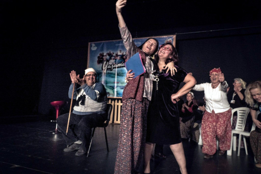 Evde yaptığı tarhana, karakılçık erişte, salça, sarma, börek ve tatlıları pazarda satarak geçimini sağlayan 42 yaşındaki Meltem Esenli ise, “Daha önce hiç tiyatro izlememiştim, fakat derslere gelmeye başladıktan sonra ne kadar sevdiğimi fark ettim. Çok severek yapıyorum, bir sürü yeri gezdik ve ödüller kazandık” diye anlatıyor sahneyi.
