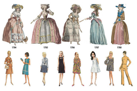 Modanın tarihine ilgi duyanlar için heyecan verici bir illüstrasyon seçkisi… 18. yüzyıldan 20. yüzyıla kadın modasının geçirdiği değişimi gösteren bir dizi renkli moda illüstrasyonu.