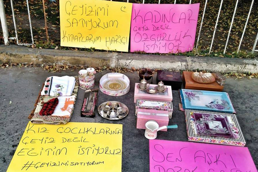 Zeynep Tilki kampanyasını sadece sosyal medyada değil sokakta da sürdürüyor. Sokağa çıkıp çeyizlik eşyaları dizen ve yanlarına ‘Kadınlar çeyiz değil, özgürlük istiyor’, Sen aşkı tabak çanak sanmışsın’ ve ‘Kız çocuklarına çeyiz değil, eğitim istiyoruz’ dövizleri koydu.