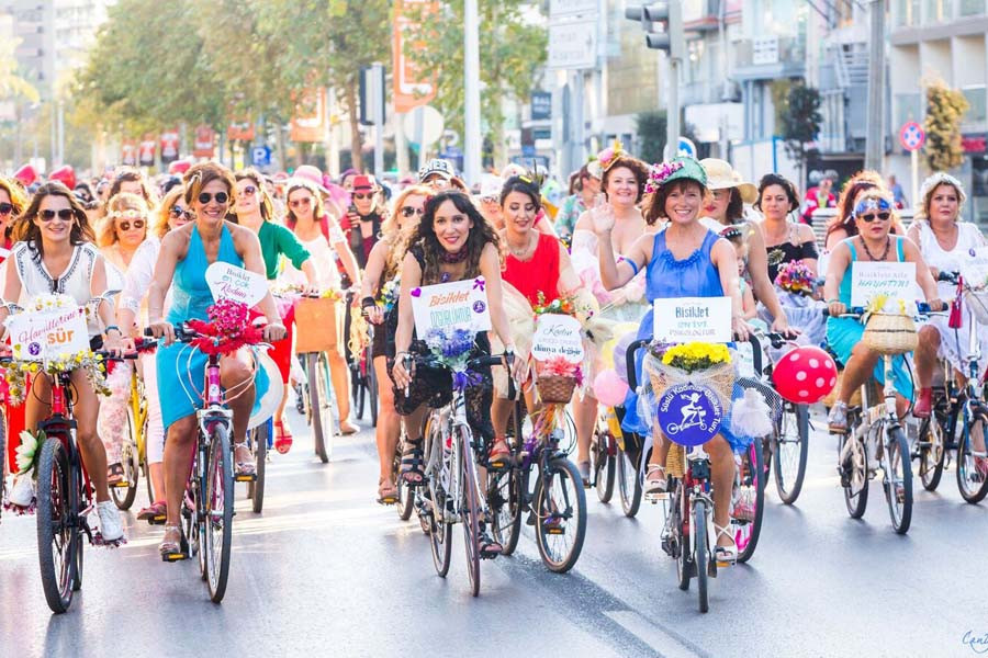 Her yıl “Egzoz dumanı değil, parfüm kokusu” sloganıyla bir araya gelen kadınlar bu yıl da rengarenk görüntülerle “Sağlığın için bisiklete bin, kalbini koru, doğayı koru” mesajı verdi.