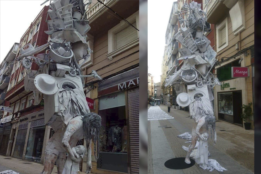 İspanyalı bir ekip olan Asociación Cultural Octubre’ın yaptığı heykelde evin bütün iş yükünü sırtlanan kadın kucağındaki çocuğuyla da bütün bu yükün altında eziliyor.