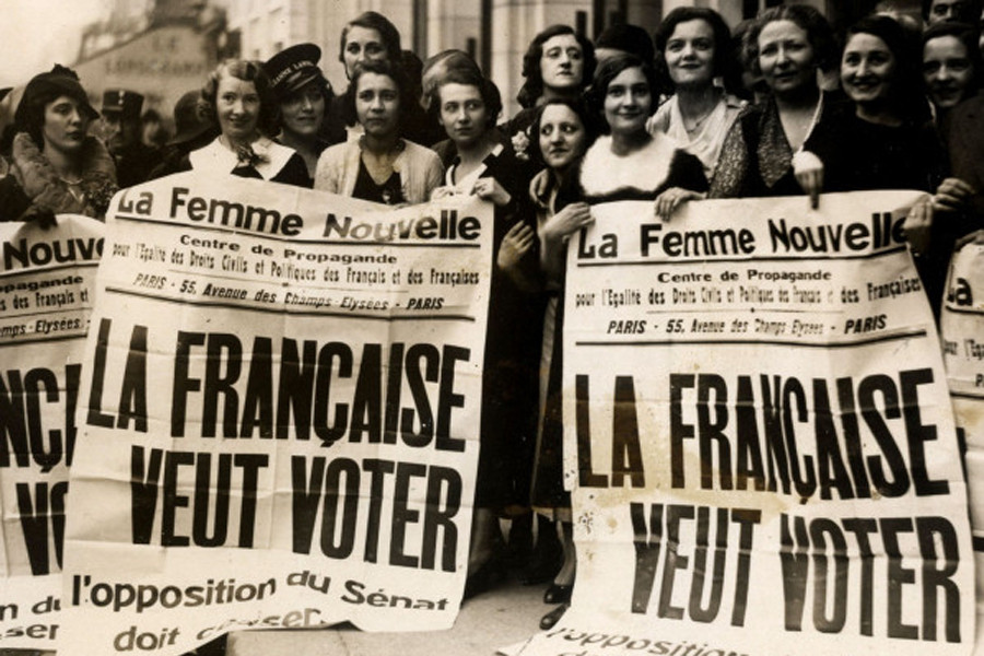 Fransa’da kadınların oy hakkını ilk kez kullanabilmesi ise ancak 1945 yılında mümkün olabildi. 4 Ekim 1944’de yapılan yasa değişikliğiyle seçme ve seçilme hakkı kazanan kadınlar ilk defa 29 Nisan 1945’te belediye seçimlerine katılarak oy haklarını kullanabildiler.