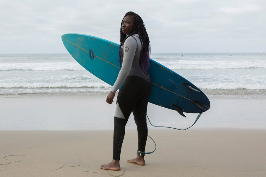 Khadija “Khadjou” Sambe 14 yaşında sörf yapmaya başladığında, memleketi Senegal, Dakar’da dalgaların içindeki tek yerli kadındı. Ergenlik yıllarını amcaları ve kuzenleri ile sörf yaparak geçirdi, bir gün antrenman yapıp rekabet edecek profesyonel kadın sörfçülerden oluşan bir topluluk bulmayı umuyordu. Şimdi 23 yaşında Kuzey Kaliforniya’da yaşıyor ve her gün profesyonel olma, ülkesini Olimpiyatlarda temsil etme ve yeni nesil Senegalli kızlara sörf yapmaya ilham verme umuduyla eğitim alıyor. California, San Jose ve Santa Cruz’da onunla üç gün geçirdik. Sambe, Dakar’dan 6.000 mil uzakta ama suya girdiğinde evde olduğunu söylüyor.