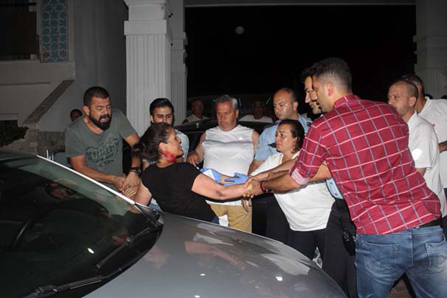 5 yıldızlı otelde 4 ay çalıştıktan sonra gerekçe gösterilmeden işten çıkarıldığını, maaşının ödenmediğini ve otel yetkilileri tarafından dövüldüğünü söyleyen 44 yaşındaki Hatice D. akşam saatlerinde otelin kapısına gelerek kırık şişe parçasını boğazına dayadı. Hatice “8 ay önce eşimi kaybettim, 4 çocuğumla ortada kalmış bin insanım. Maaş alacağım ödenmezse kendimi öldüreceğim” diyerek öfkesini dile getirdi. 2 saat boyunca direnen ve boğazından kanlar akan Hatice’ye araçların arkasından sürünerek gelen polis müdahale etti. Hatice hastaneye götürülürken kendine zarar vermemesi diye sedyeye kelepçelendi.