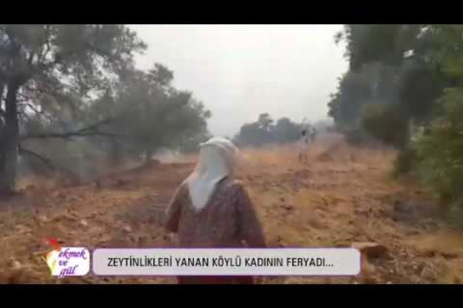 Muğla Akbük’te çıkan orman yangınında zeytinlikleri yanan köylü kadının feryadı kazınsın hepimizin zihnine.