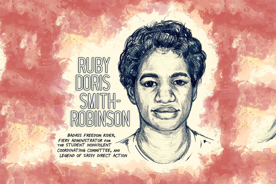 7 Ekim 1967’de 25 yaşında ölen sivil haklar mücadelesi veren Ruby Doris Smith-Robinson 1960’ların başında gençlerin Amerika’yı değiştirmek amacıyla ırkçılığa karşı mücadele etmek için okulu bıraktığı Sivil Haklar Hareketinde bir güç haline geldi. 1955 Montgomery otobüs boykotu, Şubat 1960’taki Greensboro ve North Carolina oturma eylemlerinde ırk ayrımcılığına maruz kalması, onu sivil haklar hareketine katılma konusunda etkiledi. Şiddetsiz Öğrenci Koordinasyon Komitesinin (SNCC) idari sekreteri, bu sıfatla görev yapan ilk ve tek kadın oldu. Raporlara göre, konu ayrımcılığa ve beyaz üstünlüğüne karşı geldiğinde SNCC’de hiç kimse ondan daha sert değildi. Arkadaşları onu; “Yapamayacağı hiçbir şey olmadığına ikna olmuştu ... bir güç kulesi olduğuna inanıyordu” diye hatırlarlar.