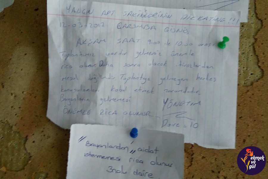 İstanbul Avcılar'da bir apartman... Yönetici apartman panosuna bir duyuru asıyor ve diyor ki "akşam saat 9 ile 10 arası toplantımız vardır. Gelmeniz önemle rica olunur. Daha sonra olacak itirazlardan mesul değilimdir. Toplantıya gelmeyen herkes konuşulanları kabul etmek zorundadır. Bayanların gelmemesi ÖNEMLE RİCA OLUNUR."