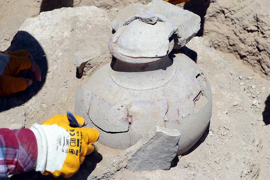 Urartuların ölü gömme adetlerindeki birinin de cesedin yakılarak kalan eşyalarıyla çömlek veya küpün içerisine bırakılmasından oluştuğunu belirten Prof. Dr. Çavuşoğlu, şöyle konuştu: