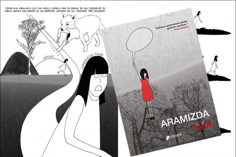 Grafik anlatılarında engellilik, psikoz, politik aktivizm ve cinsel şiddet konularını işleyen sanatçı ve akademisyen Una’nın imzasını taşıyan Aramızda, dünyanın istisnasız her yerinde şiddete maruz bırakılan kadınları ve kız çocuklarını, kuşanmak zorunda bırakıldıkları görünmezlik örtüsünü üzerlerinden çıkarıp atmaları yönünde teşvik eden sarsıcı bir grafik roman.