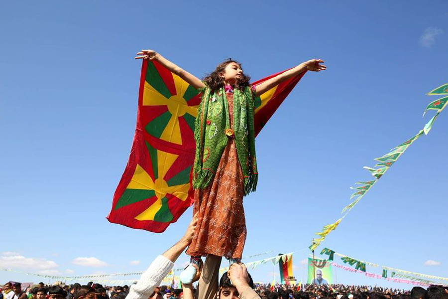 Bu yüzden işte, tarihler 21 Martı gösterdiğinde, yani doğa yeniden uyanıp, her yan çiçeğe böceğe kestiğinde, Newroz coşkusu ev içlerinden alanlara akar. En güzel giysiler, doğanın coşkusuna eşlik eder. Zılgıtlar, sadece günümüzün Dehakları değil, yüzyıllar öncesindekiler de işitsin ister gibi o biçim şiddetli çıkar ağızlardan. Kürt kadını her Newroz, “Baş eğmedim” der gururla. “Eğmeyeceğim de…”