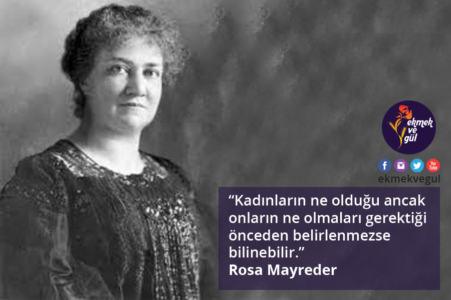 19. Yüzyılın Avusturyasında yaşayan kadın hakları savunucusu Mayreder kitaplarında da kadınlara yönelik ayrımcılığı eleştiriyor. 1.Dünya Savaşında da barış savunuculuğu da yapan Mayreder Barış ve Özgürlük, Uluslararası Kadın Birliği’nde (International Women's League for Peace and Liberty) başkanlık yaptı. İşte Mayreder’in kadınlar için söylediği bir söz,“Kadınların ne olduğu ancak onların ne olmaları gerektiği önceden belirlenmezse bilinebilir.”