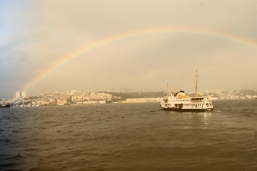 Yağmurdan sonra açan güneş doğaya ebemkuşağını armağan etmiş. Yarım daire şeklinde, gökyüzünden Burgazada açıklarında denize iniyor. Yedi rengi de açıkça görebiliyorum. Birbirinin içinde kaybolmadan birleşerek yayı oluşturmuşlar. Kendimi güvertede tahta koltuklardan birine atıyorum, eskiz defterimi çıkarıyorum. Vapur ebemkuşağına doğru ilerliyor, zihnimden geçen, “Altından geçersek belki cinsiyetim de değişir, o zaman kaçık olduğumu düşünmezler, yiğit adam olduğumu düşünür gıptayla bakarlar bana,” düşüncesi ile eğleniyorum.