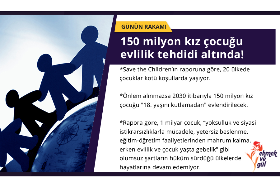 *Rapor şartlar iyileştirilmezse 2030 itibariyle 150 milyon kız çocuğun ‘18. yaşına gelmeden zorla evlendirileceğini ve 8.8 milyon çocuk gebelik sorunu ile karşılaşacağını söylüyor.