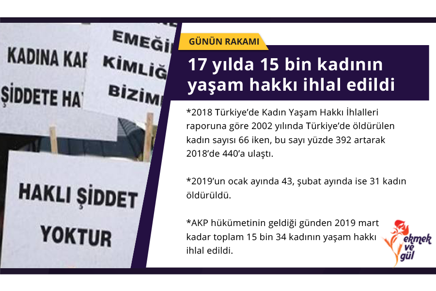 2019’un ocak ayında 43, şubat ayında ise 31 kadın öldürüldü. AKP hükümetinin geldiği günden 2019 mart ayına kadar toplam 15 bin 34 kadının yaşam hakkı ihlal edildi. Aile, Çalışma ve Sosyal Hizmetler Bakanlığı kaynaklarına atıfta bulunulan raporda, “Kadın sığınmaevlerinin’ kapasitesi 2013’ten bu yana sadece 256 kişi arttırıldı ve 2 bin 697’ye ulaştı. Belediyelere bağlı 237 kadın sığınma evi olması gerekirken, Türkiye genelinde ise 3 bin 454 kişi kapasiteli toplamda 144 kadın sığınmaevi olduğu bilgisi bakanlık tarafından aktarılmıştır” denildi.