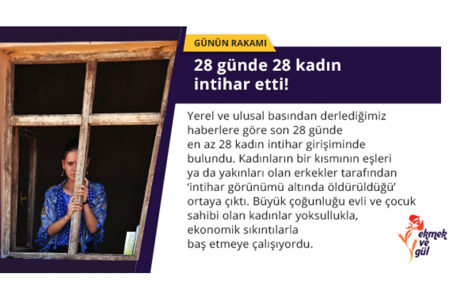 Yerel ve ulusal basından derlediğimiz haberlere göre son 28 günde en az 28 kadın intihar girişiminde bulundu. Kadınların bir kısmının eşleri ya da yakınları olan erkekler tarafından ‘intihar görünümü altında öldürüldüğü’ ortaya çıktı. Büyük çoğunluğu evli ve çocuk sahibi olan kadınlar yoksullukla, ekonomik sıkıntılarla baş etmeye çalışıyordu. 15 Temmuz sonrası ilan edilen OHAL ve yayımlanan KHK’lerle işlerini kaybeden birçok kadın da intihar girişiminde bulundu. En son, geçen yıl ihraç edilen iki çocuk annesi Hemşire Sevgi Balcı’nın 15 Ağustos akşamı intihar ettiği haberlere yansıdı. Kadın intiharlarını değerlendiren Psikolog Banu Bülbül bu tablonun şiddet, işsizlik, yoksulluk, eşitsizlikle katmerlenen umutsuzluk karşısında bir çığlık olduğunu dile getirdi.