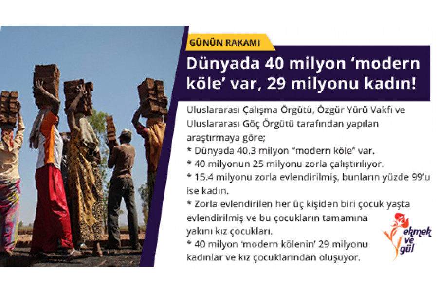 Kadınlar ve kız çocukları ‘modern kölelik’ten en fazla etkilenen kesim. 40 milyon modern kölenin 29 milyonu yani yüzde 71’i kadınlar ve kız çocuklarından oluşuyor.