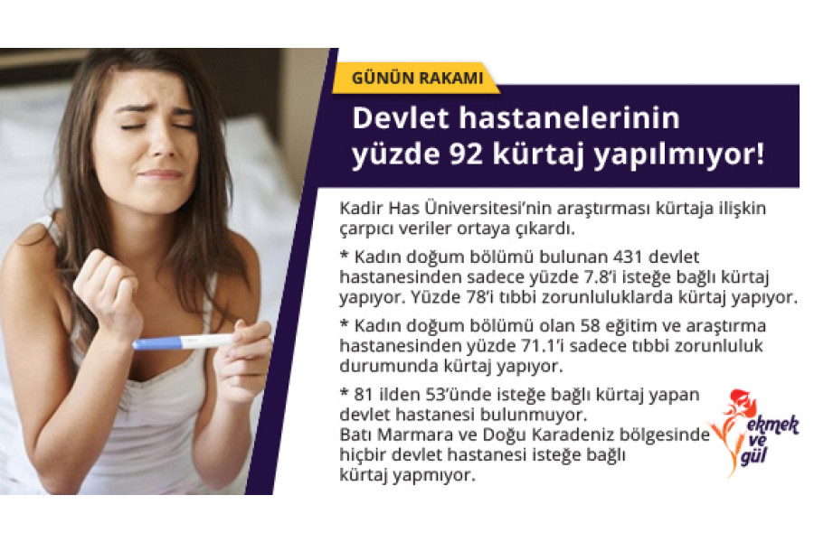 - Batı Marmara ve Doğu Karadeniz bölgesinde hiçbir devlet hastanesi isteğe bağlı kürtaj yapmıyor.