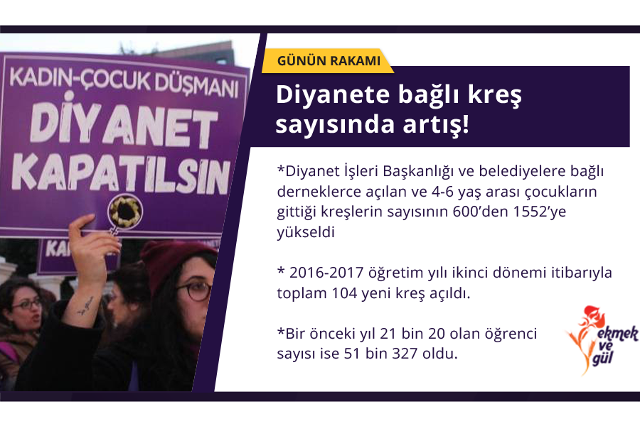 * 4-6 yaş arası çocukların gittiği Diyanet'e bağlı kreşlerin sayısı 600’den 1552’ye yükseldi.