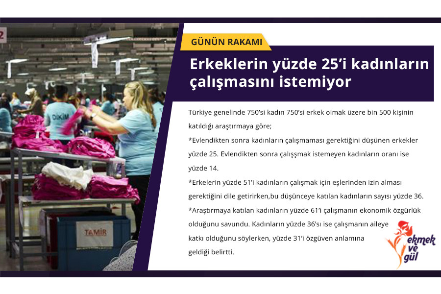 *Evlendikten sonra kadınların çalışmaması gerektiğini düşünen erkeklerin oranı yüzde 25. Evlendikten sonra çalışşmak istemeyen kadınların oranı ise yüzde 14.
