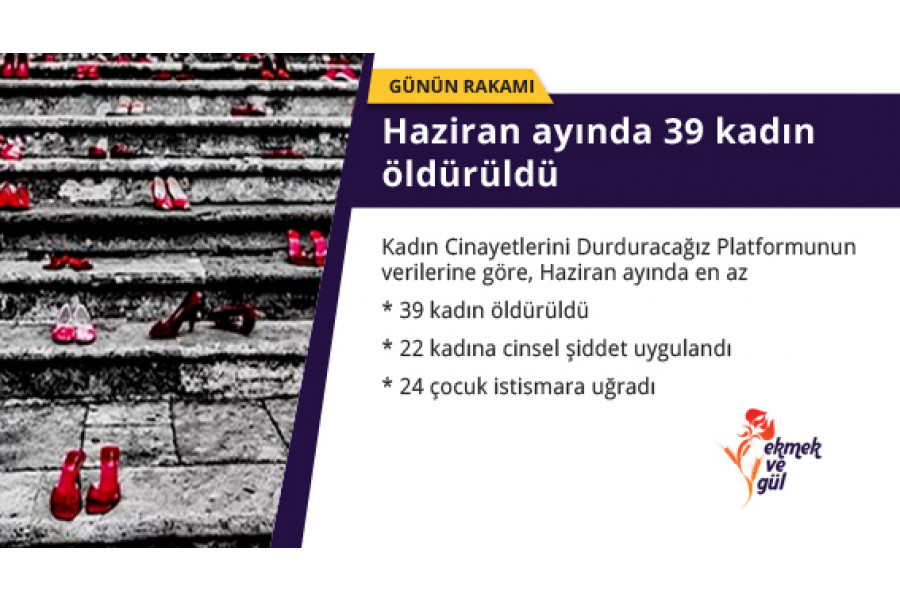 Kadın Cinayetlerini Durduracağız Platformunun her ay basına yansıyan haberlerden derlediği rapora göre 2018 yılı Haziran ayında kadın cinayeti sayısı arttı ve en az 39 kadın öldürüldü.