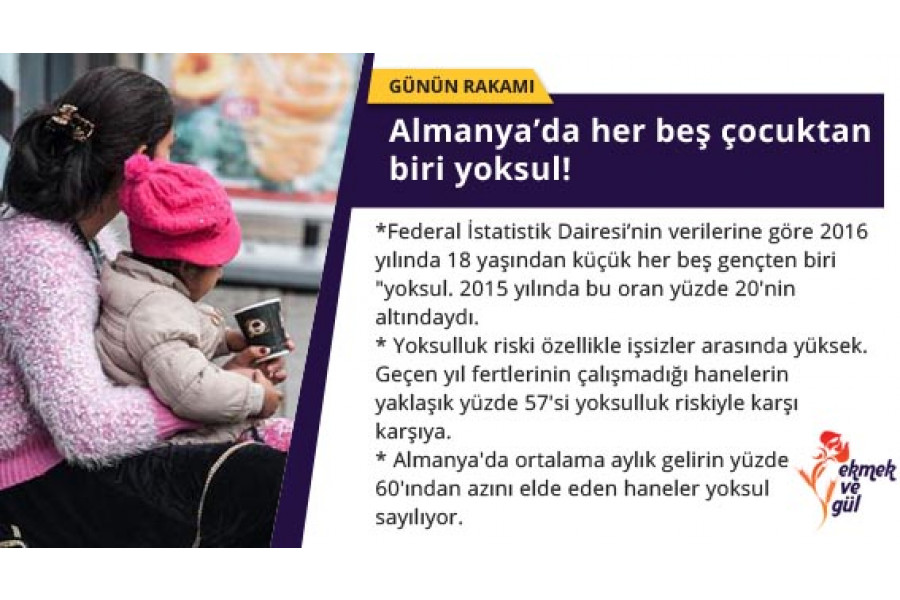 Federal İstatistik Dairesi’nin verilerine göre 2016 yılında 18 yaşından küçük her beş gençten biri "yoksul." 2015 yılında bu oran yüzde 20'nin altındaydı.
