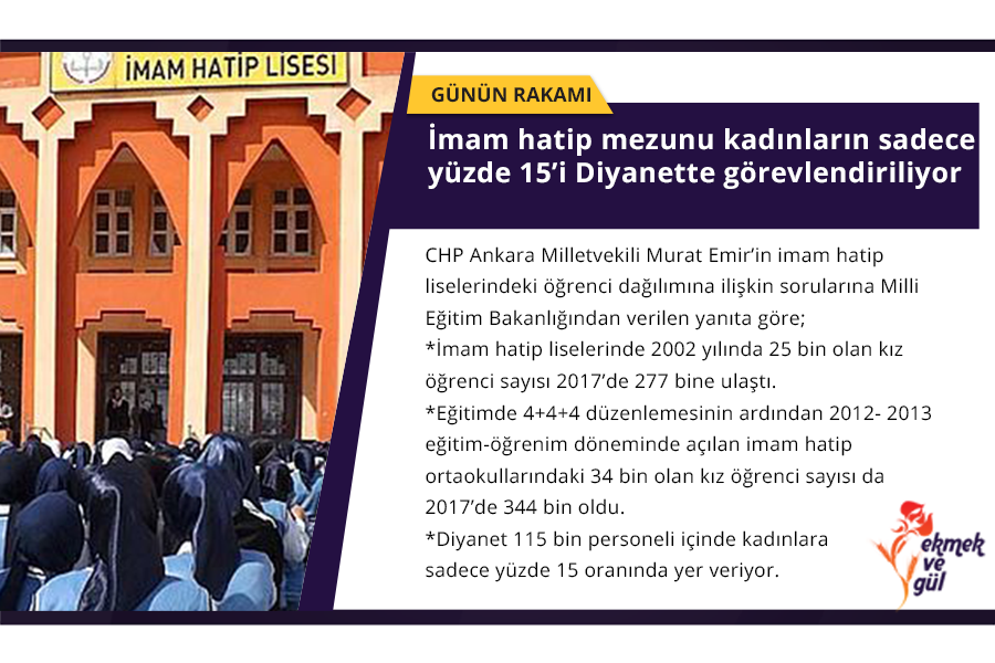 Son yıllarda imam hatiplerdeki kız öğrenci sayısındaki artış dikkat çekici. Diyanet kadın din görevlisi atamalarını yok denecek kadar az yapsa da 2002’den bugüne imam hatip liselerindeki kız öğrenci sayısı 10’a katlandı.