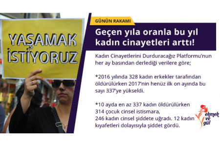 - Küresel Toplumsal Cinsiyet Uçurumu 2017 Raporuna göre Türkiye Toplumsal Cinsiyet Eşitliği Endeksinde 144 ülke arasında 131’nci sırada. 2003 yılında erkekler tarafından öldürülen kadın sayısı 83 iken 2017 yılında bu sayı 409.