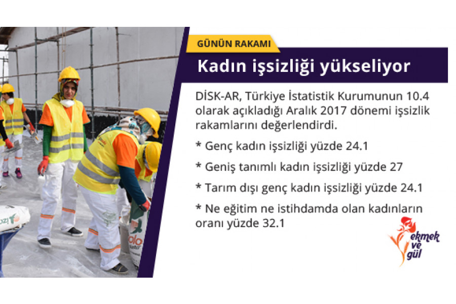 DİSK’in ‘Türkiye’de Kadın İşçi Gerçeği’ raporuna göre Türkiye’de her 10 kadınlar 3’ü çalışıyor. Çalışan kadınların yarısı da kayıt dışı, düşük ücretle ve kötü koşullarda çalışıyor.