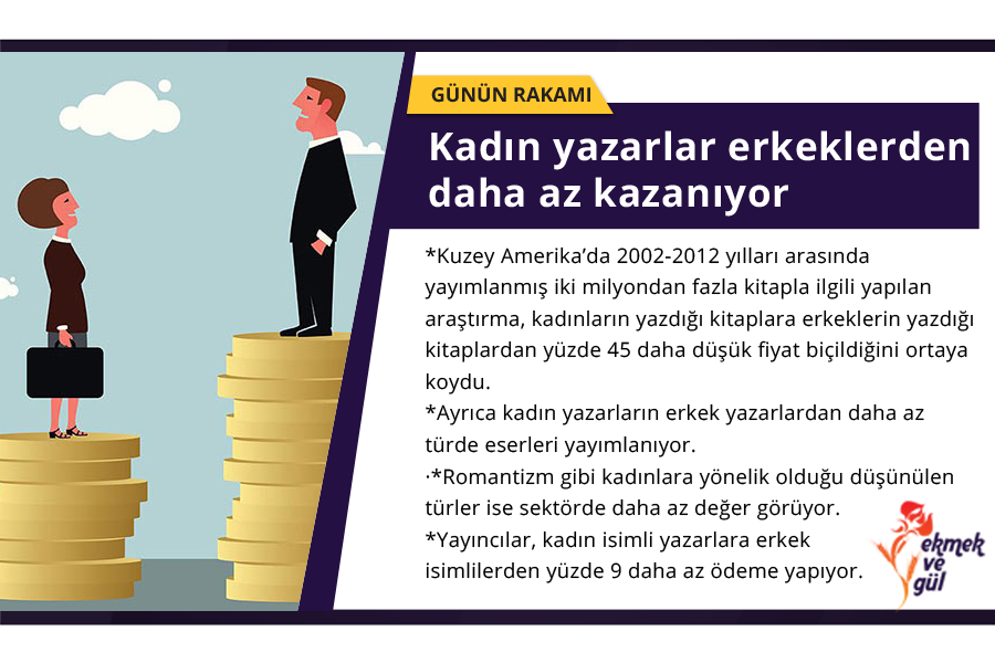 Kuzey Amerika’da 2002-2012 yılları arasında yayımlanmış iki milyondan fazla kitapla ilgili araştırmaya göre, kadınların yazdığı kitaplar, erkeklerin yazdığı kitaplardan yüzde 45 daha düşük fiyatta.
