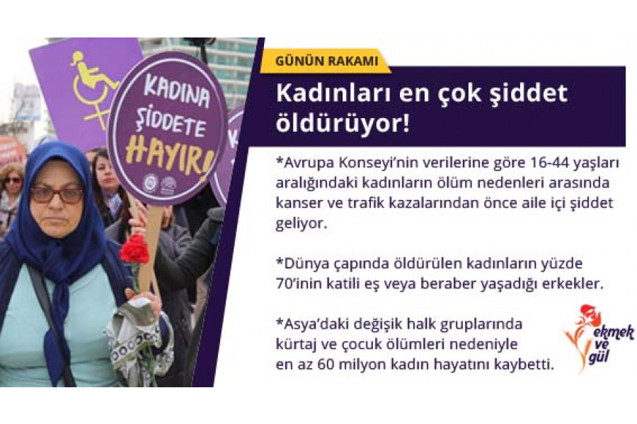 *Dünya çapında öldürülen kadınların yüzde 70’inin katili eş veya beraber yaşadığı erkeklerdi.