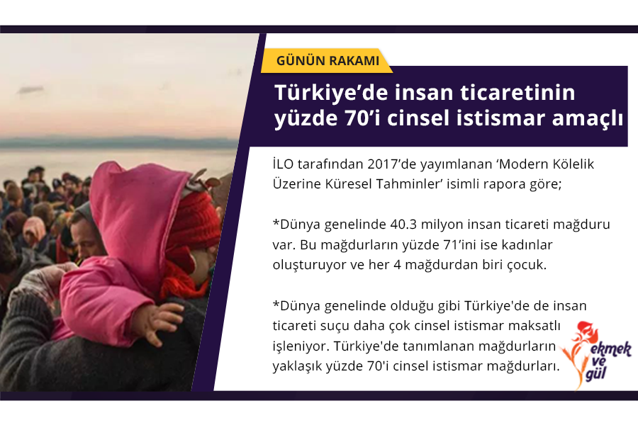*Dünya genelinde 40.3 milyon insan ticareti mağduru var. Bu mağdurların yüzde 71’ini ise kadınlar oluşturuyor ve her 4 mağdurdan biri çocuk.