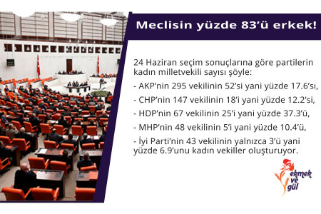 24 Haziran seçim sonuçları yine kadınların adının, sözünün, yerinin olmadığı bir meclis aritmetiği ortaya çıkardı. Mecliste sadece 103 kadın milletvekili yer alacak.