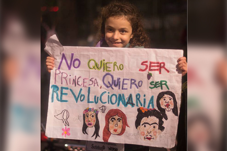 Arjantin’de kadına yönelik şiddete karşı gerçekleştirilen “Bir Kişi Bile Eksilmeyeceğiz” eylemindeki küçük eylemcinin dövizi dünya tatlısı değil mi?“Prenses olmak istemiyorum devrimci olmak istiyorum”